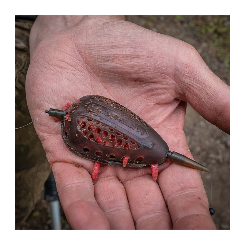 Korum Grub Feeders 45 gr, dit unieke ontwerp met klemsysteem heeft het vissen met maden gerevolutioneerd. Simpel te openen, vul de voerkorf in de palm van je hand, sluit de voerkorf en maak je worp. Nu met een grotere, meer aerodynamische vorm voor het transporteren van meer aas op eenvoudige en snelle wijze. Verkrijgbaar in de gewichten: 30 – 45 en 60 gr.