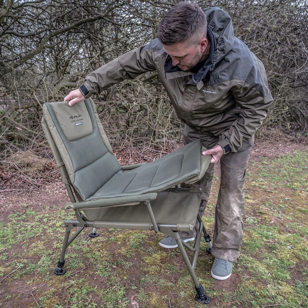 Korum Aeronium Deluxe Supa Lite, is gemaakt van een speciale magnesiumlegering dat uitzonderlijk sterk is en een zeer laag eigen gewicht heeft. Het heeft ons de mogelijkheid geboden om de Korum stoelen lichter en sterker dan ooit te maken. In navolging van het succes van onze originele Aeronium concept stoel, wordt dit Deluxe model geleverd met een geheel waterdichte cover van de zitting, evenals een verwisselbare, gevoerde matras voor langere sessies. Met volledig verstelbare poten die in positie vastgezet kunnen worden en compacte, zwenkbare moddervoeten voor extra stabiliteit op ruw terrein.