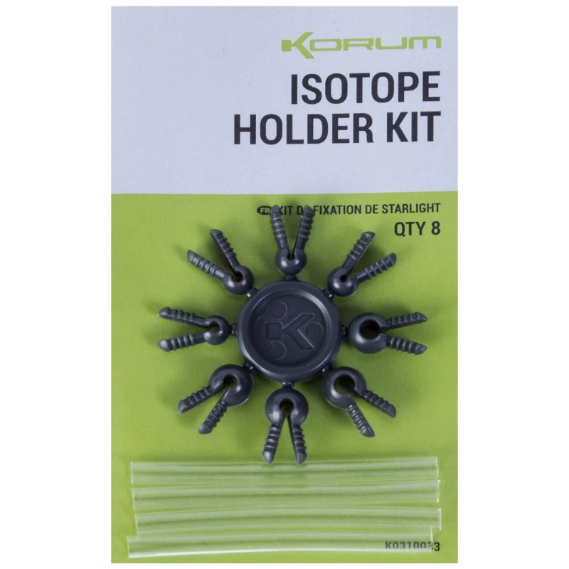 Korum Isotope Holder Kit, zijn een essentieel onderdeel van het nacht vissen tijdens het kijken naar de tod tip voor beetindicatie. De Korum Isotope houderset bevat een reeks houders van verschillende grootte die op bijna elke staaftip passen. Elke verpakking bevat acht Isotoophouders in vier verschillende grootten, onze kits bevatten ook een veilige montage van heldere slangen om uw isotopen veilig op hun plaats te houden. Onze isotopensets zijn compatibel met alle isotopen met een diameter van 3 mm.
